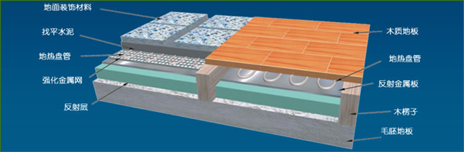 從人體感受的角度來看,地板輻射散熱是一種非常舒適的采暖方式:地面和緩加熱,熱量緩慢上升,不易造成污濁空氣對流,室內(nèi)保持潔凈,溫度分布符合人體生理需要,改善血液循環(huán),促進(jìn)新陳代謝,衛(wèi)生且保健。地板輻射供暖方式熱舒適性高,且地板輻射采暖達(dá)到16攝氏度的平均室溫,與對流供暖室溫20攝氏度的熱舒適感覺效果相當(dāng);這種采用輻射散熱的采暖方式,以其室內(nèi)地面溫度均勻、便于裝修和節(jié)省空間等特點(diǎn)越來越受到業(yè)主歡迎。地暖的供暖方式有兩種:平板太陽能水暖和發(fā)熱電纜。地面材料都必須是采取地暖專用的復(fù)合地板或者是地磚。尤以復(fù)合地板為佳實(shí)木地板需要經(jīng)過特殊處理。