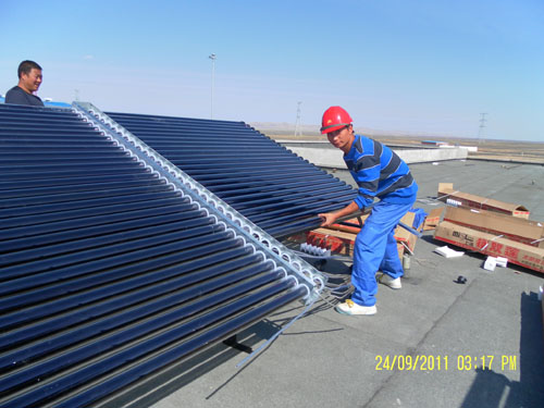 上海鎂雙蓮太陽能熱水器廠家在中國石油公司西氣東輸甘肅蘭州工程所做的是U型熱管,里面不走水,耐高溫抗高寒,保證在極端天氣下365天24小時有熱水使用。