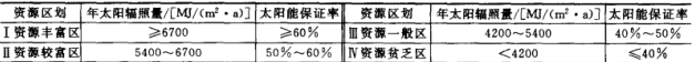 一、經(jīng)驗(yàn)法    這是最簡(jiǎn)易的一種方法,通常用于太陽能工程的方案設(shè)計(jì)階段。在設(shè)計(jì)的初始階段,設(shè)計(jì)人員需結(jié)合當(dāng)?shù)氐奶栞椛淝闆r,確定使用季節(jié)內(nèi)太陽能熱水工程系統(tǒng)的太陽能保證率。表4-6是按我國的太陽輻照資源區(qū)劃(水平面上的年太陽總輻照量),給出的各區(qū)太陽能保證率的選擇范圍,可供設(shè)計(jì)人員參考使用。