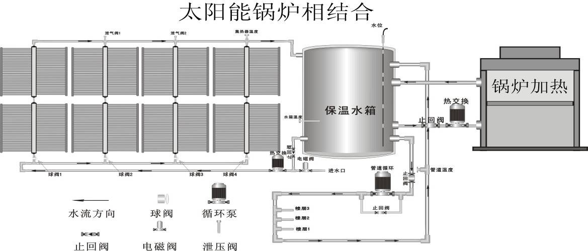 太陽能熱水器工程 太陽能與鍋爐熱水運(yùn)行原理參照?qǐng)D(四)